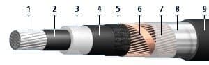 Оболочка - из полимерного ПВХ со сниженными показателями горючести в черном цвете.